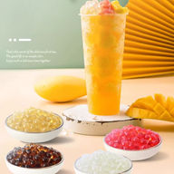 寒天晶球 (原味,樱花,黑糖,桂花 ),, 黑糖生粉圆,芒果爆珠,葡萄爆珠,荔枝爆珠,百香爆珠,马蹄爆珠,青稞爆珠,椰果 (彩虹,原味)。
